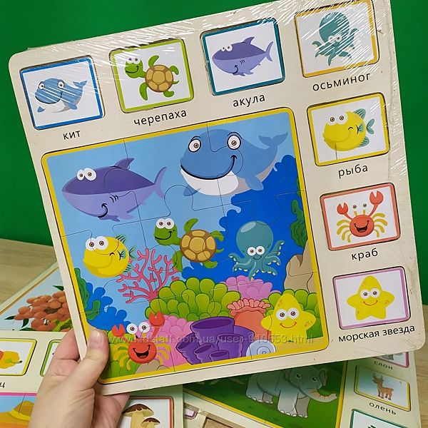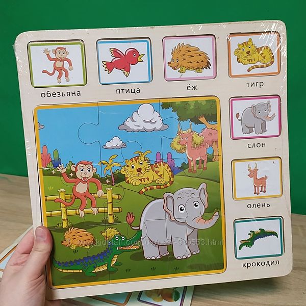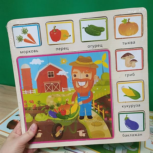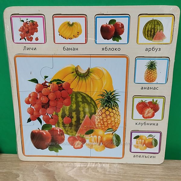 Подробное описание: Деревянные пазлы фрукты, овощи, транспорт, животные