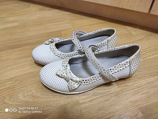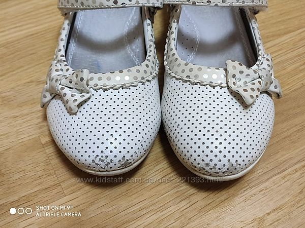 Туфли БЕЛЫЕ 32 размер, 20 см по стелькеВ целом состояние, хорошее, носили на праздники, но немного потерлись носочки, в цену учла.