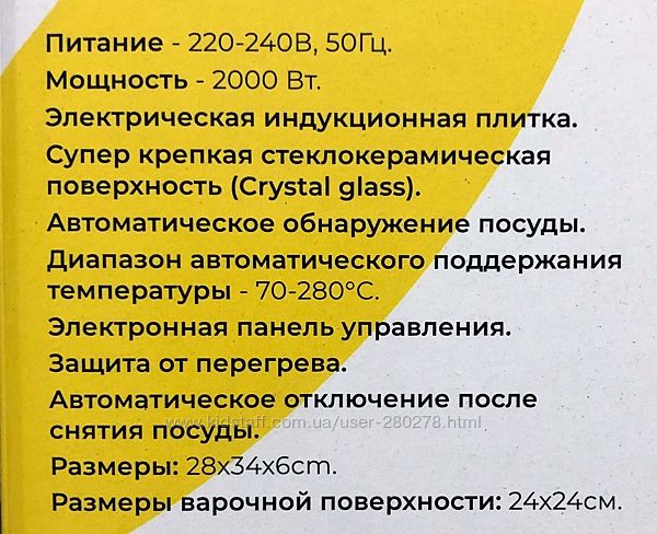Автоматическое отключение после снятия посуды. Размеры: 28x34x6cm.