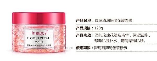 Подробное описание: Маска для лица гелевая с лепестками роз IMAGES Flower Petals Mask Rose 120г