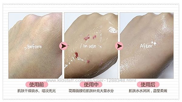 Результат: После применения кожа становится гладкой и мягкой, сияющей изнтутри. Проходит чувство стянутости, шелушения, темные круги и тусклость.