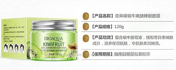 Закупка косметики в нашем магазине происходит после тщательного изучения отзывов покупателей. Поэтому весь ассортимент у нас только с отличными отзывами пользователей. Товары закупаются непосредственно у производителя, произведенные для внутреннего рынка т. е. высочайшего качества и не подразумевает никаких подделок.Ночная витаминная маска на основе киви и улиточного муцина BIOAQUA Kiwi Fruit Snail Tender Skin Sleep Mask (120г)