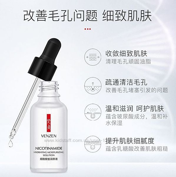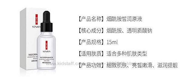Закупка косметики в нашем магазине происходит после тщательного изучения отзывов покупателей. Поэтому весь ассортимент у нас только с отличными отзывами пользователей. Товары закупаются непосредственно у производителя, произведенные для внутреннего рынка т. е. высочайшего качества и не подразумевает никаких подделок.Сыворотка для лица с никотинамидом VENZEN Nicotinamide Hydrating Moisturizing Solution (15мл) увлажняет, питает и восстанавливает кожу.