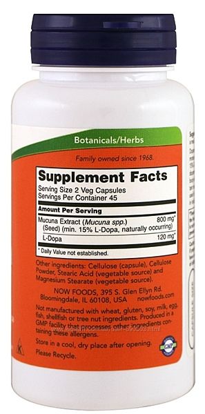 Now foods, Dopa Mucuna, 90 капсулУ меня в наличии. Цена 490 грн.