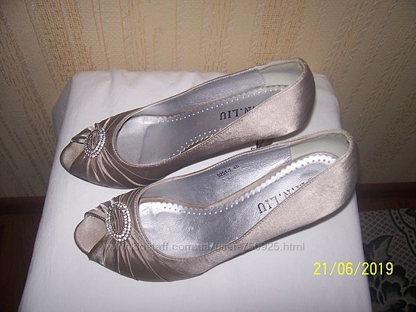 очень красивые. удобные. нарядные туфли бренд M.N.LIU /Италия .пишется 40 размер по стельке 25.5 см идут на наш размер 39.верх красивый атласный текстиль .внутри кожа покрыта серебристым лазерным напылением.высота очень устойчивого каблучка.который не чувствуется на ноге совсем. до 7 см.Другие объявления продавца