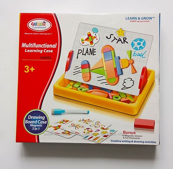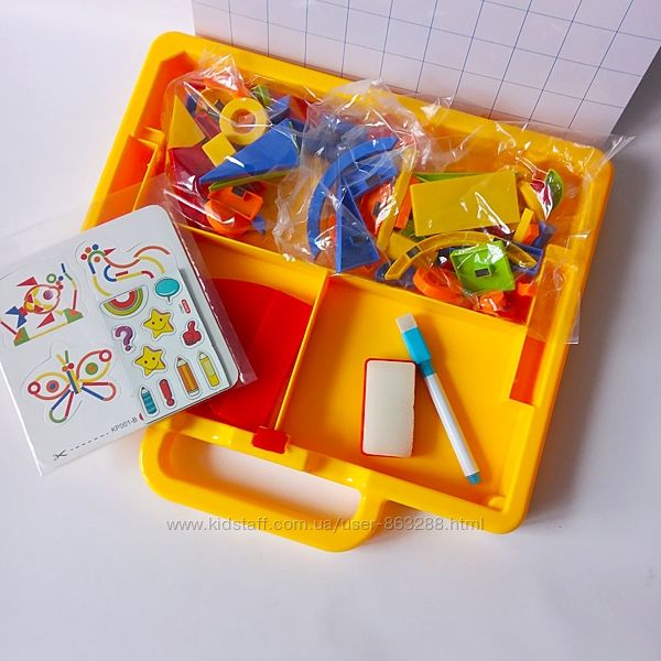 Большой развивающий набор с двухсторонней доской, предназначенный для рисования водными маркерами и для сборки магнитной мозаики.Комплект содержит: