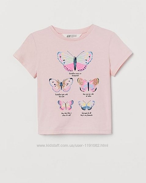 Милые летние футболочки из мягкого хлопкового трикотажа с принтом бабочки от европейского бренда H&M (Англия).