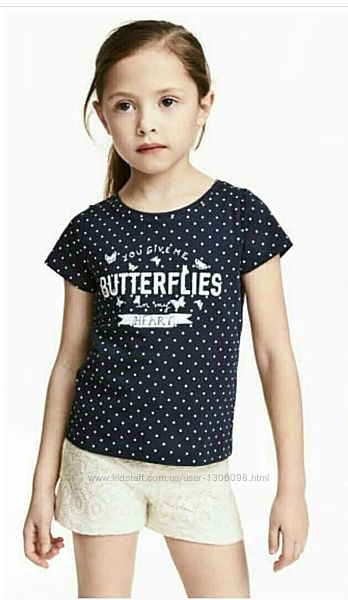 В наличии модная футболка для для девочек.H&M , Великобритания.