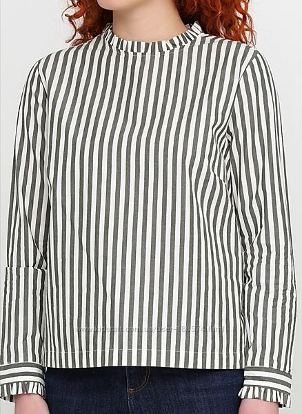 Стильная блуза в полоску, рюш очень нежно подчёркивает ворот и манжеты.Плечи 36см, пог 48см