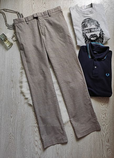 Бежевые коричневые светлые натуральные в клетку мужские брюки штаны не узкие прямые широкие высокий рост от H&M размер "52\Л" ПОТ 40-43 ПОБ 53-65 Длина внешнего шва 105 см Длина внутреннего шва 83 см Посадка спереди 23 см Посадка сзади 40 см Штанина внизу 21 см Состав 97% хлопок Состояние идеальное,бежевый насыщенный цвет с коричневыми и белыми полосками,плотненький стрейчевый натуральный материал,по бокам и сзади карманы,цена 699 грн