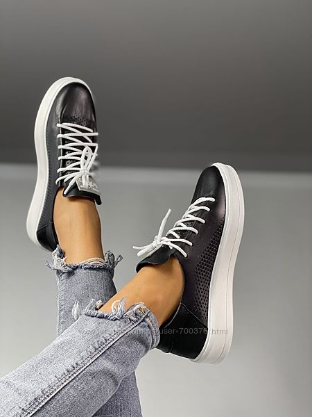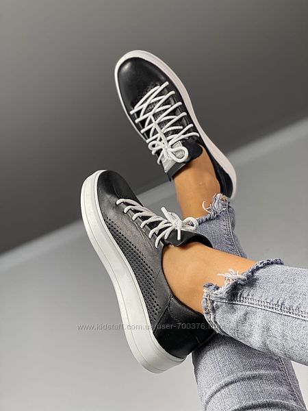 Кеды, натуральная кожа, перфорация, чёрные. Материал верха: натуральная кожа. Перфорация сквозная. Подошва 2.7-3.7 см. Размерный ряд 36-40. Производитель: Украина. Размер в размер.