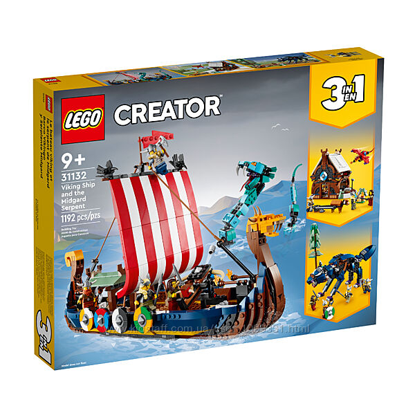 Подробное описание: Lego Creator 3-in-1 Корабль викингов и Змей Мидгарда 1192 детали 31132