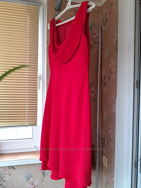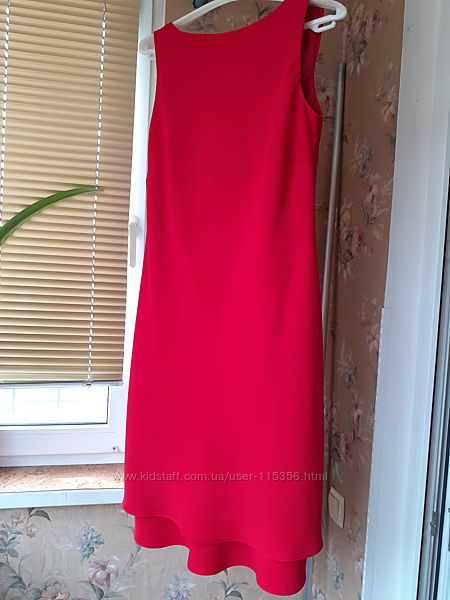Платье французской фирмы Evan_picone.Размер 6 (USA). Наш где-то 44-46. 100% полиестер. На подкладке. Длина 100 см, ПОГ-44, ПОБ-50. Впереди вырез лодочкой, сзади - очень красивый вырез с ниспадающей волной. Одевалось пару раз на выход, сейчас просто мало. Цвет - насыщенно красный.