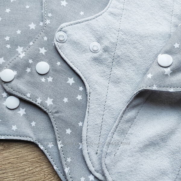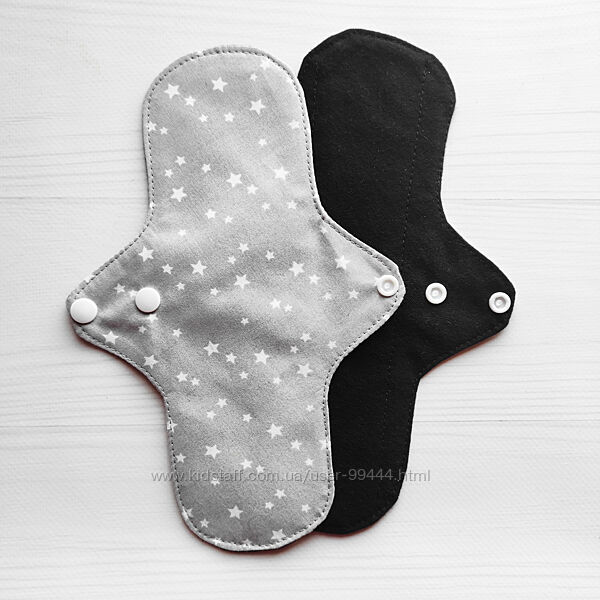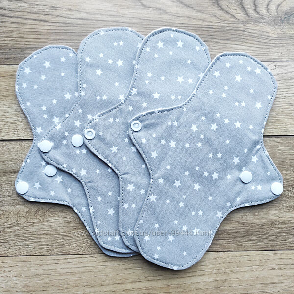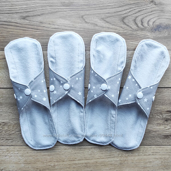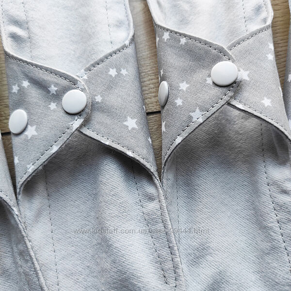 Багаторазові прокладки сірі з зірочкамиКупуйте від 6 прокладок і отримайте косметичку для них або щоденну прокладку в подарунок!