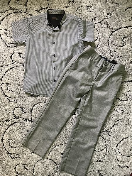 Классный костюм для школы на 6 лет( можно с 5 и до 7 лет, смотрите замеры) в идеальном состоянии! Брюки и рубашка( с коротким рукавом). Обе вещи фирмы Next. Длина рубашки - 45 см., ПОГ - 35 см. Длина штанов - 64 см., ширина штанины внизу - 13 см., пояс регулируется. Цена комплекта - 350 грн.