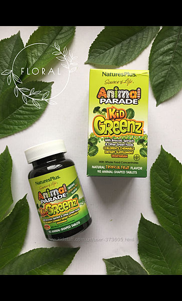 Срок годности до 07/2022 Nature´s Plus, Source of Life, Animal Parade, Kid Greenz, вкус натуральных тропических фруктов, 90 животных