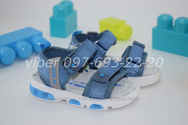Босоножки Tom.M арт.7477-D Подошва с мигалками LED Материал верха: текстиль Стелька - кожаная с супинатором. Наличие размеров уточняйте! Замеры 21 - 14 см 22 - 14,5 см 23 - 15 см 24 - 15,5 см проданы 25 - 16 см 26 - 16,5 см