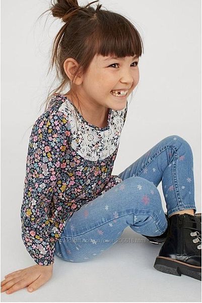 Яркая цветочная блуза рубашка H&M кружево 3-4 года