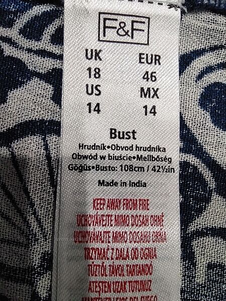 Красивенная блузка свободного кроя на очень крупную даму. Бренд F&F, состав 100% вискоза. Легенькая, очень приятная к телу, незаменимая для лета вещь. Сделана в Индии.Новая, сток, без бумажной этикетки.