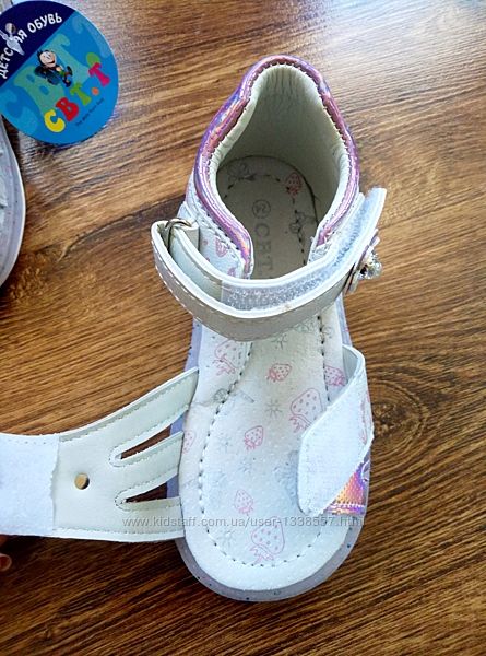 Нарядные босоножки для девочки, отличного качества!Стелька кожа, супинатор, твёрдая высокая пятка.