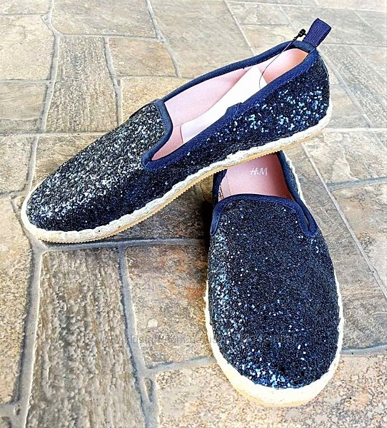Очень легкие, Блестящие эспадрильи мокасины слипоны на девочку H&M Размер US3- Euro 35. Оригинал Размер US3 - по стелечке около 21 смОплата: