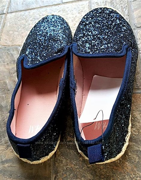 Подробное описание: Блестящие эспадрильи мокасины слипоны на девочку H&M 21 см