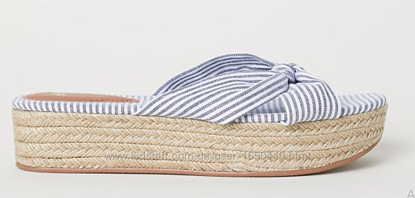 Подробное описание: Босоножки в бело-голубую полоску на платформе H&M HM размер 25 см