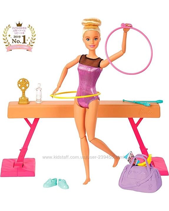 ОСОБЕННОСТИ НАБОРА BARBIE SPORT & MALIBU: в комплектации спортивные аксессуары, 15 игровых предметов, кукла в блестящем цветном трико, спортивный костюм, полотенце, обувь, снэки, сумка; если прикрепить к кукле зажим-кольцо, ребенок сможет наблюдать, как она легко перепрыгивает через гимнастическое бревно.
