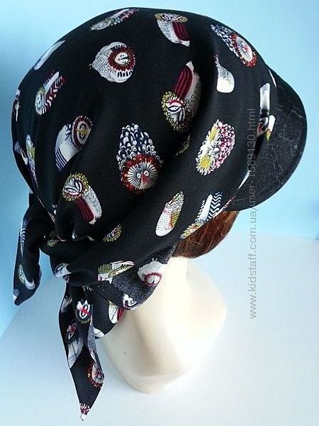 Подробное описание: Бандана женская. Штапель Совы - на черном фоне. Ручная работа.