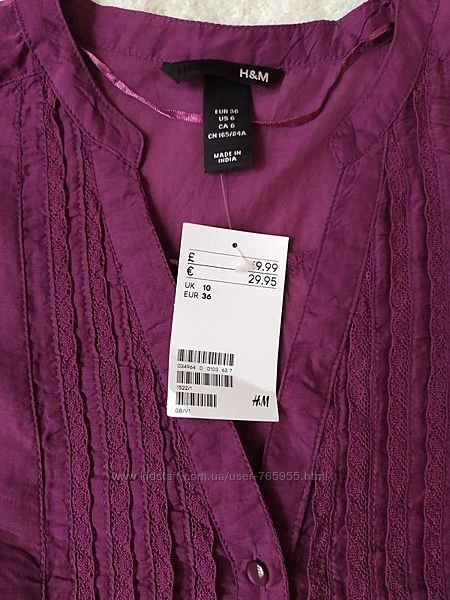 Красивая женская блуза H&M , красивый цвет, четвертной рукав, закругленная линия низа, очень приятная к телу ткань , отличного качества, привезена с Германии, в реальности очень класснаяЗамеры : плечи-36см, ширина под мышками-44-47см, ширина в талии- 42см-44см, длина по спинке - 71 см, ширина низа-53-54см