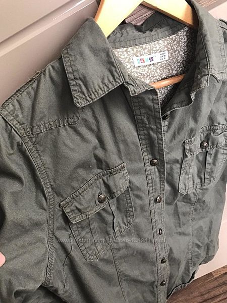 Котоновая рубашка Denim CO, цвета хаки.Состояние новой. Размер указан но фото.Длина 63 см, ширина 46 см, рукава 62 см.