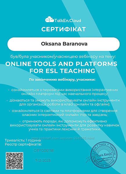 Я – досвідчений викладач англійської мови з дипломом філолога. Маю багаторічний досвід роботи з дітьми, навчаю у дитячому освітньому центрі та проводжу заняття онлайн. Вважаю, що найкраще навчання – це те, яке приносить радість і зацікавлює дитину.