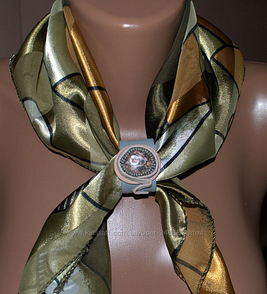 Это авторская работа,поэтому Вы можете быть уверенной,что не встретите точно такую же вещь на ком-то другом)) Помните о том, что украшения ручной работы нуждаются в бережном отношении и правильном хранении.Не нужно их бросать как украшения из металла.Хранить лучше в отдельной ячейке каждое,уложив его в комфортном положении.Необходимо беречь от воздействия химикатов и излишней влаги.Если Вы намочили украшение из кожи,то просушите при комнатной температуре вдали от источника тепла.Пыль и загрязнения удаляйте сухой косметической кистью или,при необходимости, слегка влажной ватной палочкой.при соблюдении этих несложных правил,украшение прослужит очень долго. Очень многие любят шарфы и платки,но не все часто их используют ежедневно,т.к. проблемно красиво и быстро завязать,да ещё и что бы не развевался на ветру и оставался на месте. И тут на помощь приходит кольцо для такого аксессуара: быстро вдеваются концы или средние части длинного шарфа и он надёжно и красиво закреплён!Кольцо сделано из натуральной кожи со вставкой натурального камня.Достойно и оригинально смотрится.