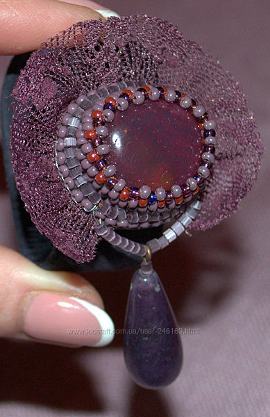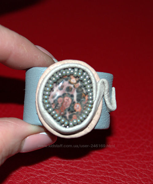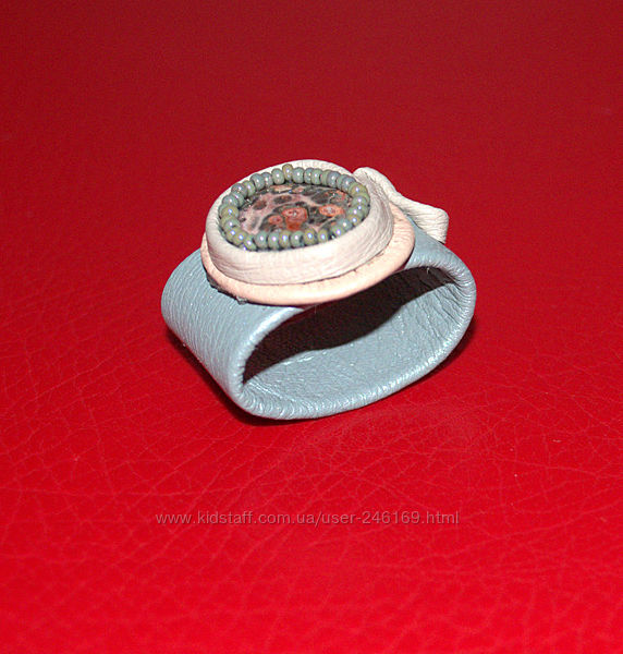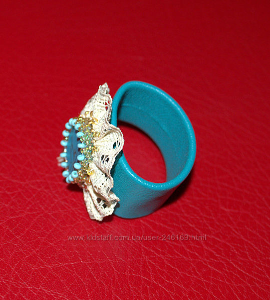 Кольцо сделано из натуральной кожи и кружева, со вставкой натурального камня.Достойно и оригинально смотрится)
