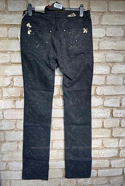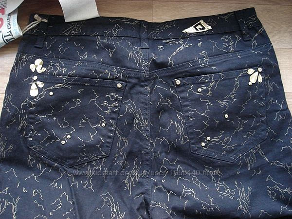 Очень качественные, плотные турецкие джинсы с золотистыми рисунками и золотой фурнитурой Тянутся!На бирке указан размер 31,