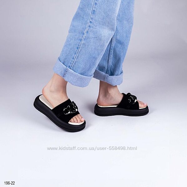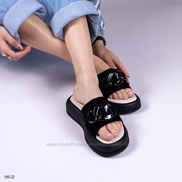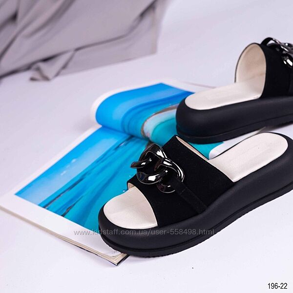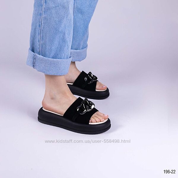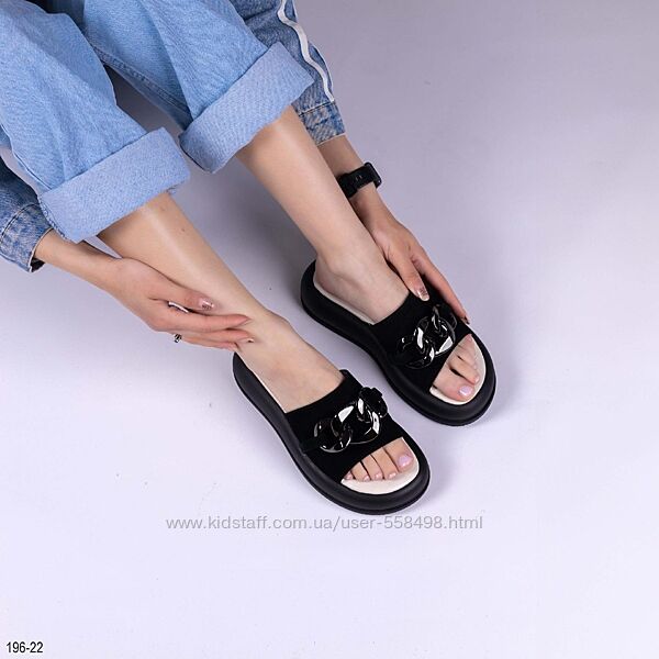 Подробное описание: Замшеві жіночі чорні чорні шльопанці з ланцюгом