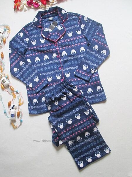 Теплый флисовый домашний костюм пижама Микки Маус George. Новый. Размер 12-14. Ориентируйтесь на замеры. ШТАНЫ: Длина по внешнему шву 102 см. Длина по внутреннему шву 74 см. Полуобхват резинки 40 см + тянется до 69 см. Полуобхват бедер 63 см + тянется до 72 см. Посадка высокая: перед 29 см, сзади 42 см. Ширина штанины вверху 38 см, внизу 24,5 см. КОФТА: Длина от плеча 69 см. Длина по боковому шву 44 см. Плечи 39 см. Полуобхват груди 55 см. Полуобхват талии 54 см. Полуобхват по низу 54,5 см. Рукав: от плеча 60,5 см - от подмышек 43,5 см. Тянется. Состав: 100% полиэстер.