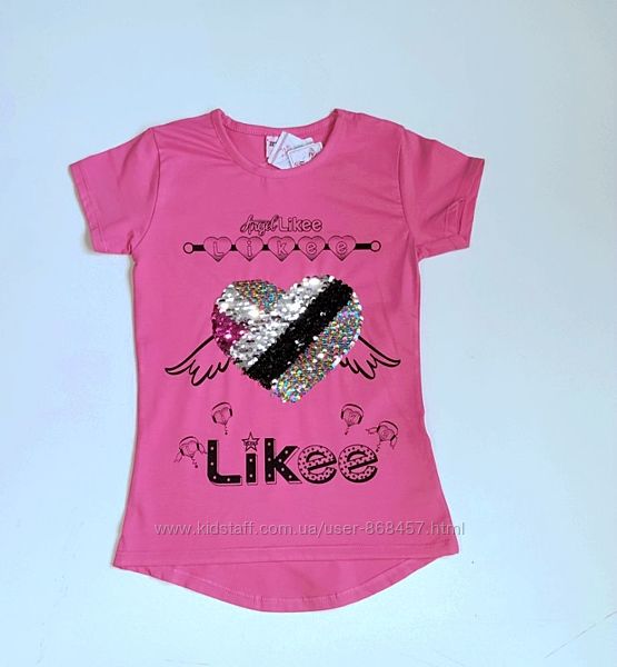 Футболка для девочки LIKEE 7-8,8-9,9-10,10-11, 11-12 лет,Лайки ХИТ СЕЗОНА!Модная,качественная футболка для девочки LIKEE . Украшена пайетками перевертышами.Отличного качества..