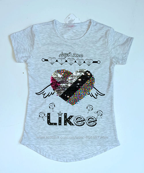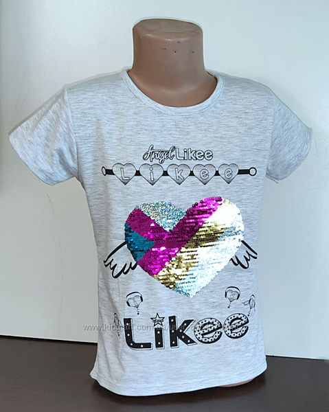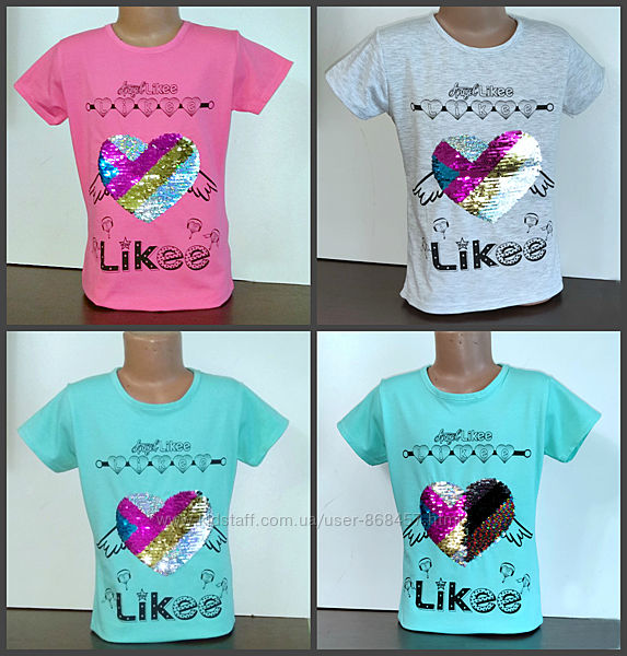 Футболка для девочки LIKEE 7-8,8-9,9-10,10-11, 11-12 лет,Лайки ХИТ СЕЗОНА!Модная,качественная футболка для девочки LIKEE . Украшена пайетками перевертышами.Отличного качества..