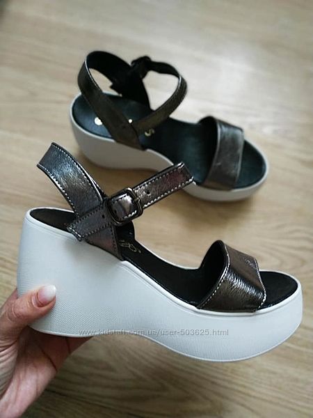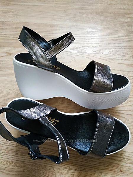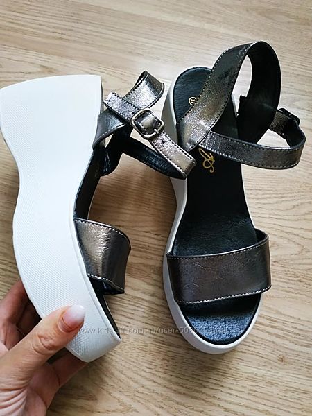 натуральная кожа, босоножки на танкетке, платформа,цвет никельпроизводство Украина