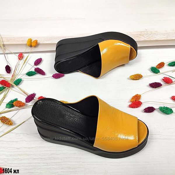 Подробное описание: Кожаные женские сабо желтого цвета на платформе