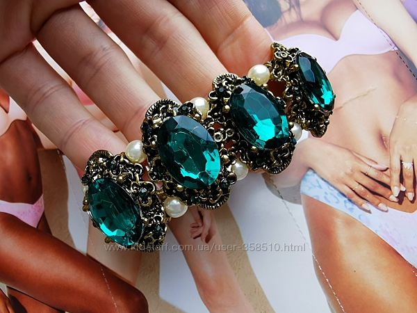 Шикарный браслет с зелеными камнями в винтажном стиле