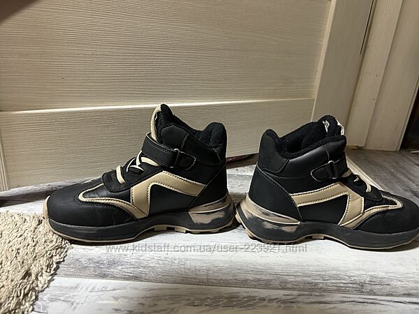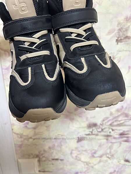 Стан відмінний - на фото: на 12- ))))) Єдине- з внутрішньої сторони є потертості на підошві із-за тертя черевиків один об одне ( шукайте на фото). Але завдяки практичним кольорам це абсолютно не видно. Матеріали- на вигляд шкіра/ нубук. Стан - відмінний. Дефектів ( окрім вказаного вище) немає.
