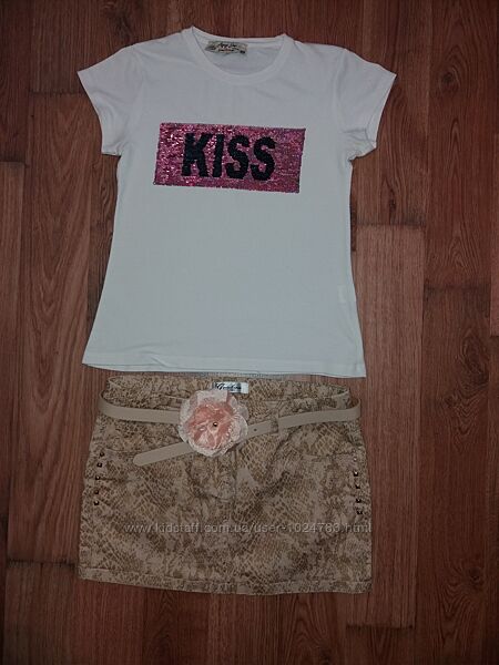 Футболки Wanex, Ayugi,юбки Next (H&M), р.134-140-146 (будут до р.146-152). Очень классные, модные. Стразы, пайетки на месте. Состояние идеальное! Одеты по несколько раз. Отлично будет комплектом. Можно и отдельно.