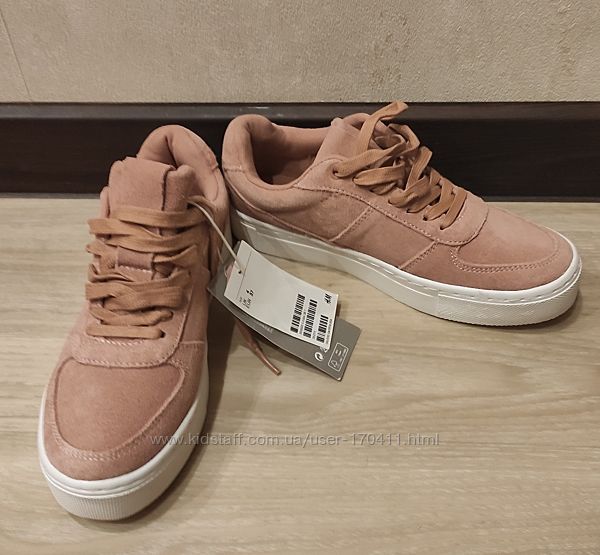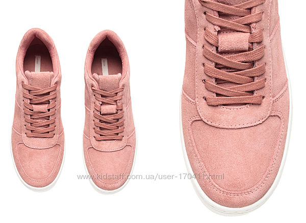 Стильные кроссовки H&M, натуральная замша. Удобные, очень приятный цвет пыльной розы. Кроссовки со шнуровкой спереди, стелька из хлопкового твила и резиновая подошва.Размер 4 uk, 37 euro, 23.5 см по стельке.