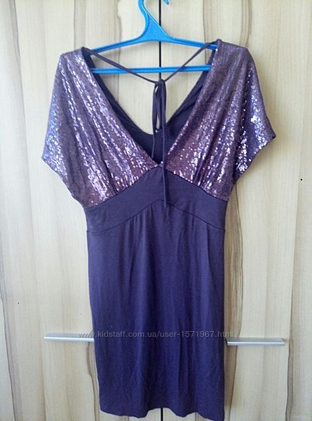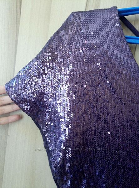 Красивое вечернее/коктельное платье лилового цвета с паетками. Размер М, возможно будет и на L, т.к трикотажное, хорошо тянется.Замеры: длина 85, ширина 42 см. В Хорошем состоянии.