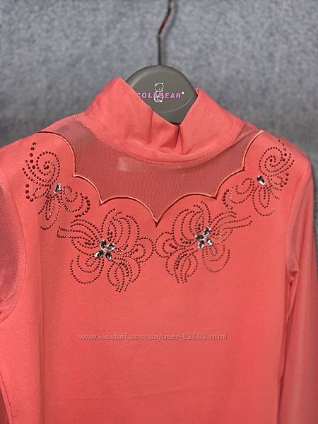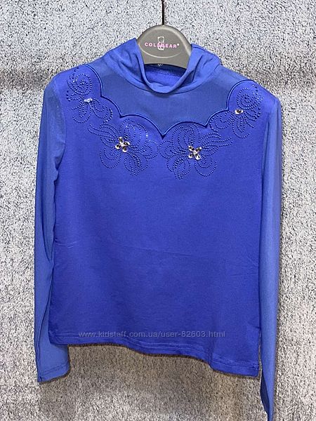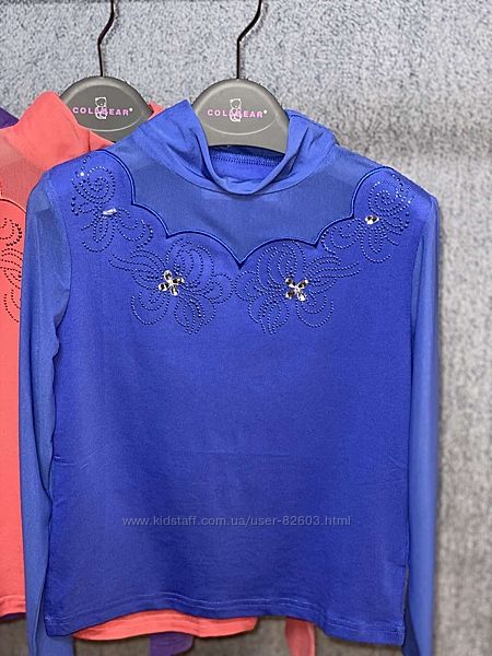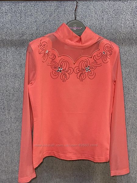 Deloras фирменный гольфик , на рукавах и горловине вставки двойной сетки. Очень мягкий и качественный. Перед украшен камушками. В наличии в трёх цветах в размерах 134,140,146,152,158,164Отлично подойдёт в школу