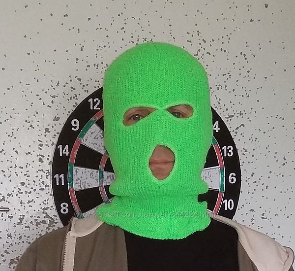 Отличный подшлемник на лыжи в морозную погоду! Мягкий и теплый акрил. При желании отверстие для глаз можно сделать общим, сняв перетягивающую нитку.