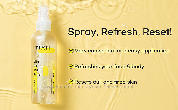 Подробное описание: Набір для обличчя з ніацинамідом TIAM Vita B3 тонер Mist Toner і сироватка