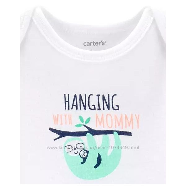 - белое боди с принтом и надписью «HANGING WITH MOMMY»
